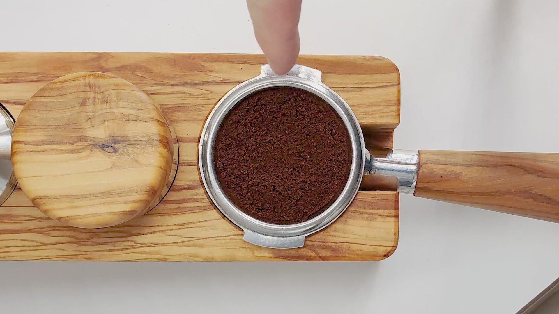 2. Platzieren Sie das Tool auf dem Siebträger und drücken Sie es sanft in das Sieb.